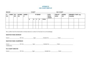 The Teachers Service Commission (TSC) County Merit List is a vital tool in the recruitment and selection process for teachers in Kenya. This document ensures that qualified candidates are evaluated fairly and transparently at the county level, contributing to the equitable distribution of teaching opportunities across the country.